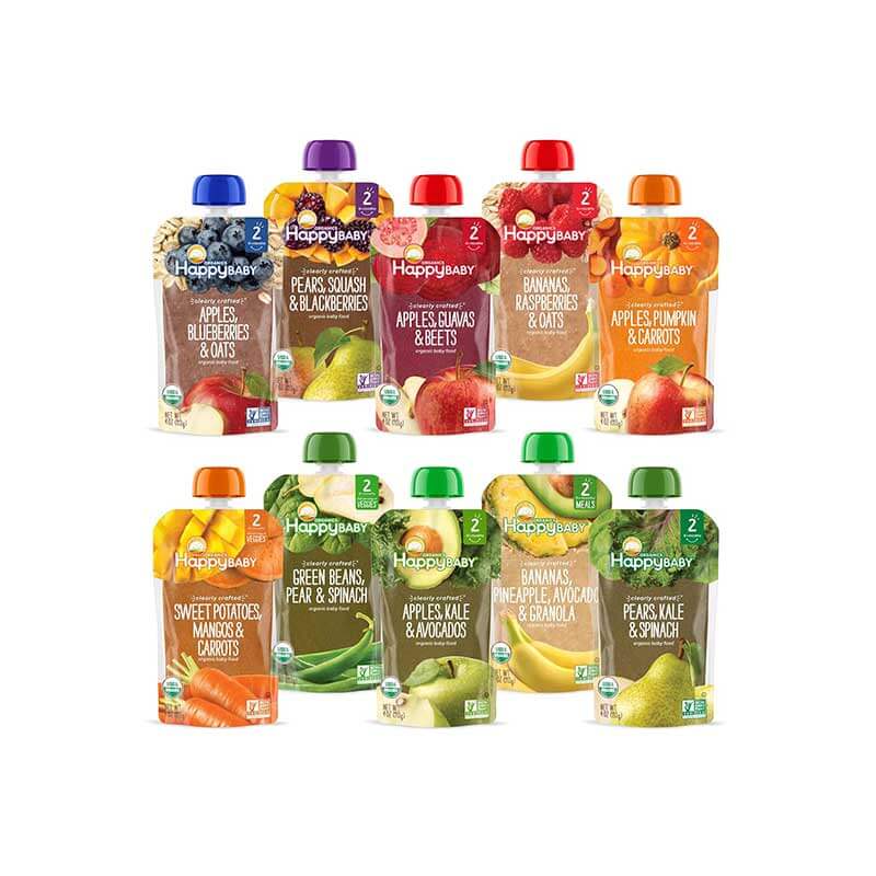 Happy Baby Organics Stage 2 Baby Food Pouches, Gluten Free, Vegan & Healthy Snack, Clearly Crafted Fruit & Veggie Puree, Fruit & Veggie Variety Pack, 4 Ounces (Pack of 10), Amazon Exclusive