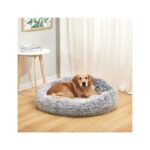 Bedfolks Calming Donut Dog Bed, 36 Inches Round Fluffy Dog Beds for Large Dogs, Anti-Anxiety Plush Dog Bed, Machine Washable Pet Bed (Dark Grey, Large)