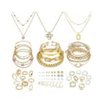IFKM 36 PCS Gold Plated Jewelry Set with 4 PCS Necklace, 11 PCS Bracelet, 7 PCS Ear Cuffs Earring, 14 Pcs Knuckle Rings for Women Girls Valentine Anniversary Birthday Friendship Gift