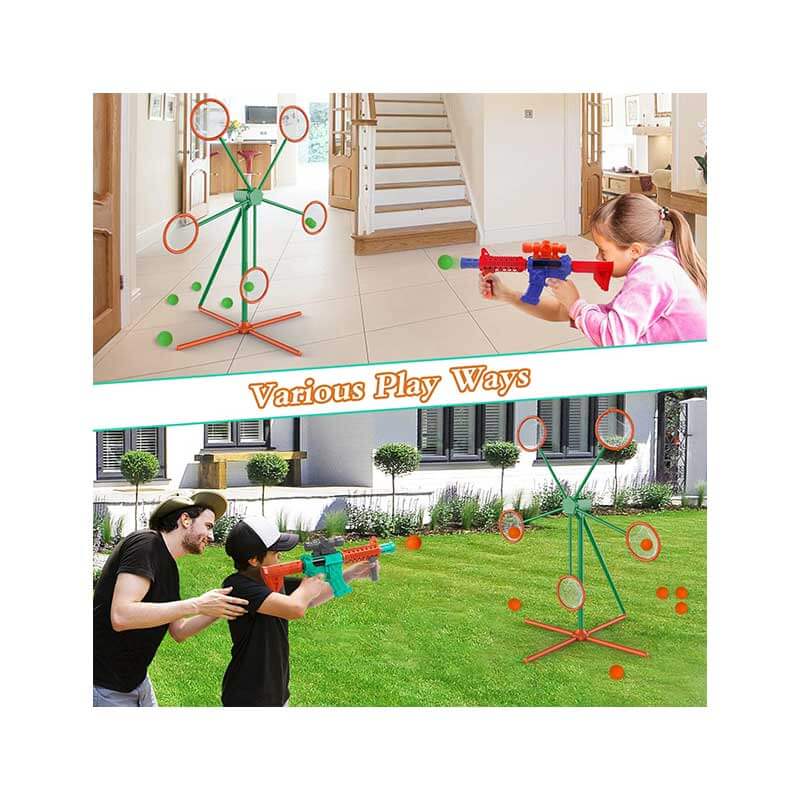 • About Popper Air Toy Guns & Target – Cool and realistic shape design, and perfect color matching. The self-rotating pinwheel target reaches a height of 53.1 inch (135 cm). Popper air toy gun dimensions length 24.4 inch * width 9.5 inch (62cm*24cm). So they are also a game toy suitable for adults and children together.