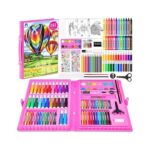 VigorFun Art Kit, Drawing Painting Art Supplies for Kids Girls Boys Teens, Gifts Art Set Case Includes Oil Pastels, Crayons, Colored Pencils, Watercolor Cakes (Pink)