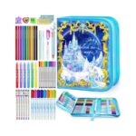 • 【53 PCS Washable Fruit Scented Markers Set】1X Frozen Tote Bag, 10 X Erasable Colored pencils, 10 X Washable Fine Markers, 6 X Washable Twistable Crayons, 8X Washable Wide Chisel Markers, 6 X Glitter Pens, 2 X Gel Pen, 1 X Roller Macrame Pen, 1 X 6 colored ballpoint pen, 1 X Castle Eraser, 1 X Love Eraser, 1 X Pencil Sharpener, 1 X scale, 4X Grafiti Templates, – that’s a total of 53 accessories.