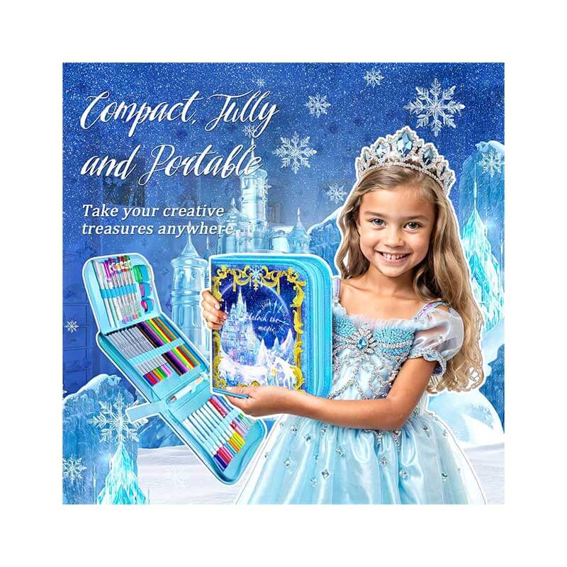• 【Durable Portable Tote Bag】 The frozen case contains four zippered compartments, making it easy for your little girl to keep her pens organised. When she is finished coloring, she can stow the case away, closing it with a velcro fastener. It super easy for kids to travel with it with the carry handle, whether in the play house game or on holiday. It can also be used for things such as makeup case or a carry case for other frozen toys.